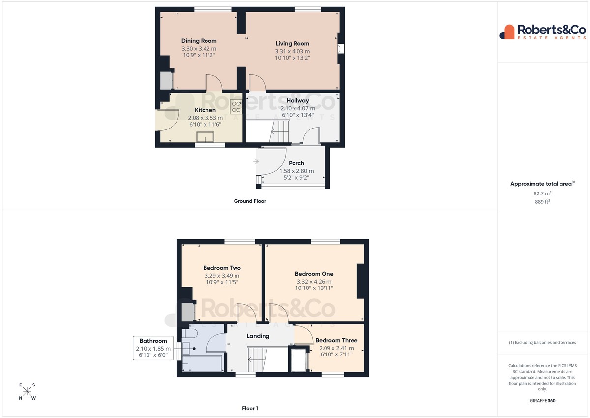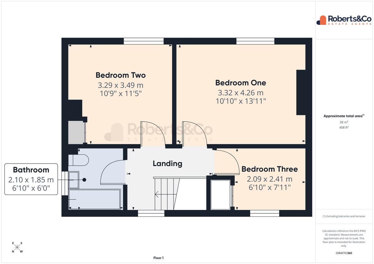 BEDROOM ONE 10' 10" x 13' 11" (3.3m x 4.24m)
