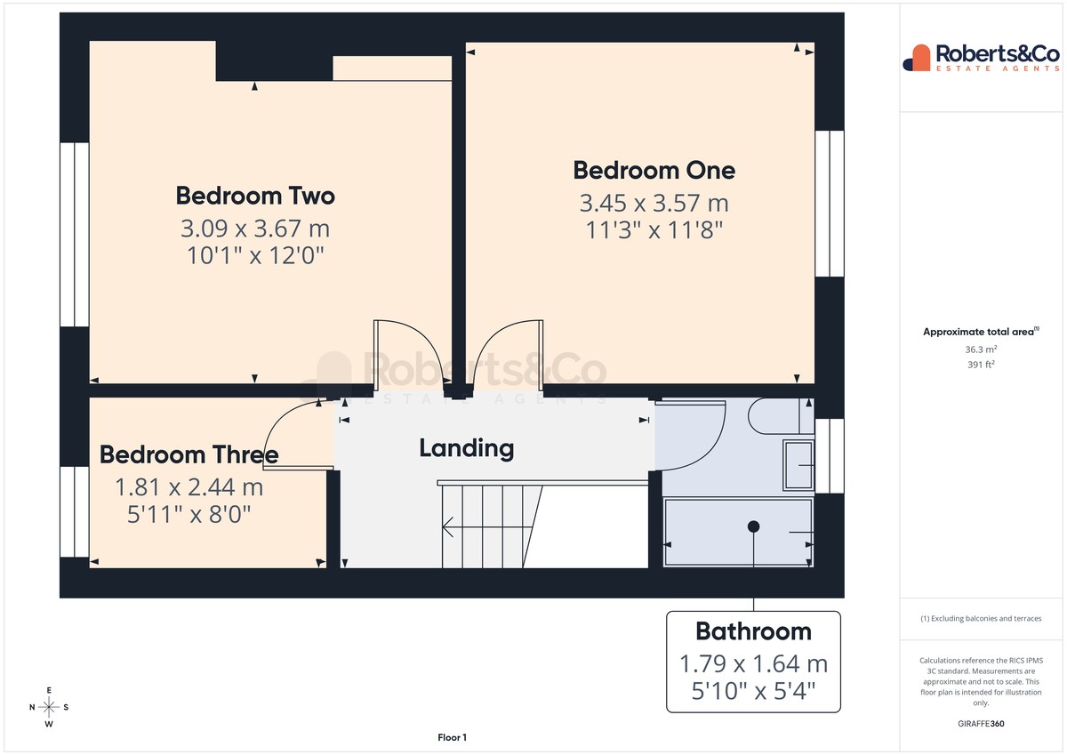 BATHROOM 5' 10" x 5' 4" (1.78m x 1.63m)