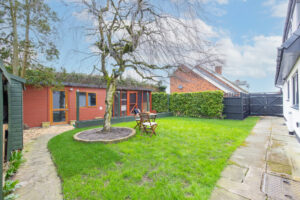 Externally, the home continues to impress. The property enjoys two separate garden areas: a south-facing rear garden ideal for outdoor relaxation and entertaining, and an additional side garden. The side garden currently accommodates a large cattery, which offers excellent potential to be converted into a home office, gym, studio, or other useful outbuilding.