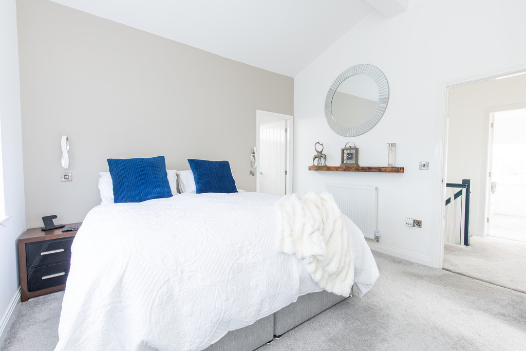 To the first floor, the property offers three generously sized double bedrooms. The impressive primary bedroom suite benefits from its own ensuite shower room and dressing area, while the remaining bedrooms are served by a well-appointed family bathroom.