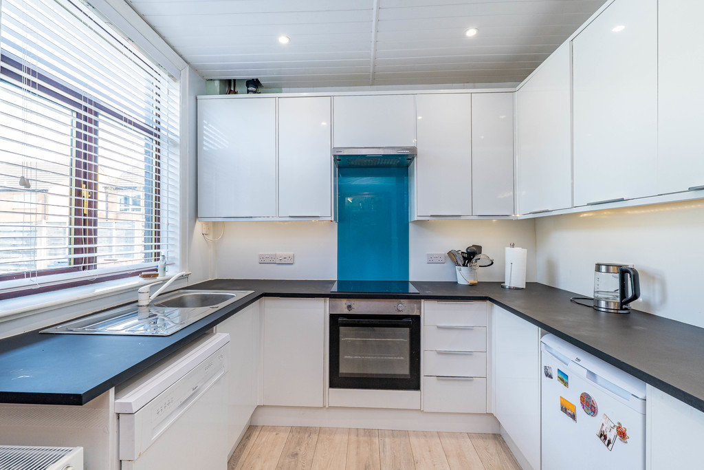 The fitted kitchen is well-appointed with white cabinetry and complementary worktops, offering both practicality and a clean, contemporary feel. There is space and plumbing for a dishwasher, along with provision for an under-counter fridge freezer. A useful understairs pantry/store room provides additional storage. To the rear of the property, a downstairs utility room houses the washing machine, tumble dryer and freezer, and there is also the added benefit of a ground floor WC.