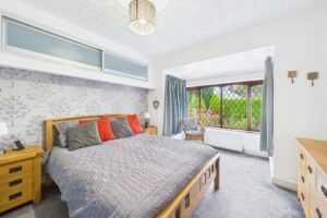 The ground floor is home to two well-proportioned bedrooms. The first is a bright and spacious double, featuring fitted wardrobes and a large bay window that floods the room with natural light. The second bedroom offers great flexibility, making it ideal as a guest room, home office, or additional family space. A family bathroom completes this level.