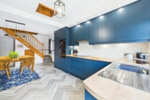 At the rear lies the impressive dining kitchen, recently updated and thoughtfully designed with an extensive range of cabinetry and generous worktop space. Well-equipped with integrated appliances - including fridge freezer, dishwasher, and space for a washing machine - this is a kitchen that makes cooking and entertaining a pleasure. There's plenty of room for a dining table too, creating a sociable hub where the family can gather for morning coffee or evening meals.