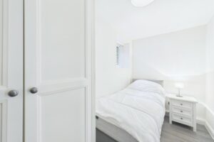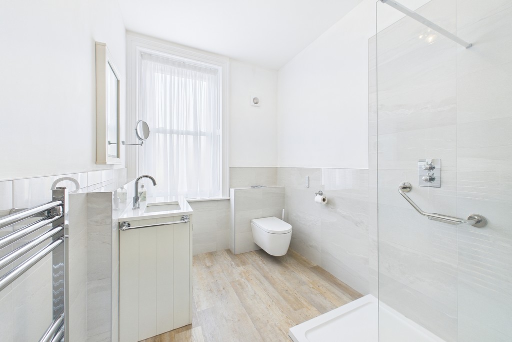 On the ground floor, there is a stylish shower room, while the first floor hosts two double bedrooms, a utility room, and a walk-in storage cupboard. The staircase continues to the second floor, where there are two further double bedrooms and a convenient WC.