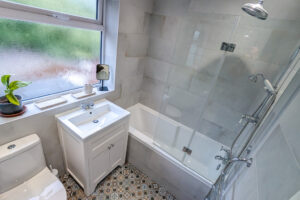 Upstairs, the property comprises two generously sized double bedrooms along with a well-proportioned single bedroom, making it perfectly suited to families, guests, or those working from home. The bathroom has been fully refitted to a high specification, comprising a contemporary three-piece suite with shower over bath, finished to an excellent standard throughout.