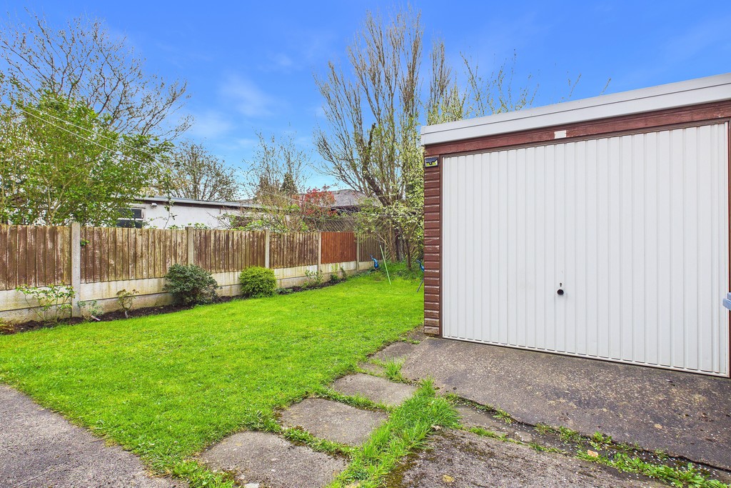 Externally, the south facing rear garden is mainly laid to lawn, offering a pleasant and secure space ideal for children, outdoor entertaining, or simply enjoying the warmer months. To the front, a driveway provides off-road parking and leads to a detached garage.