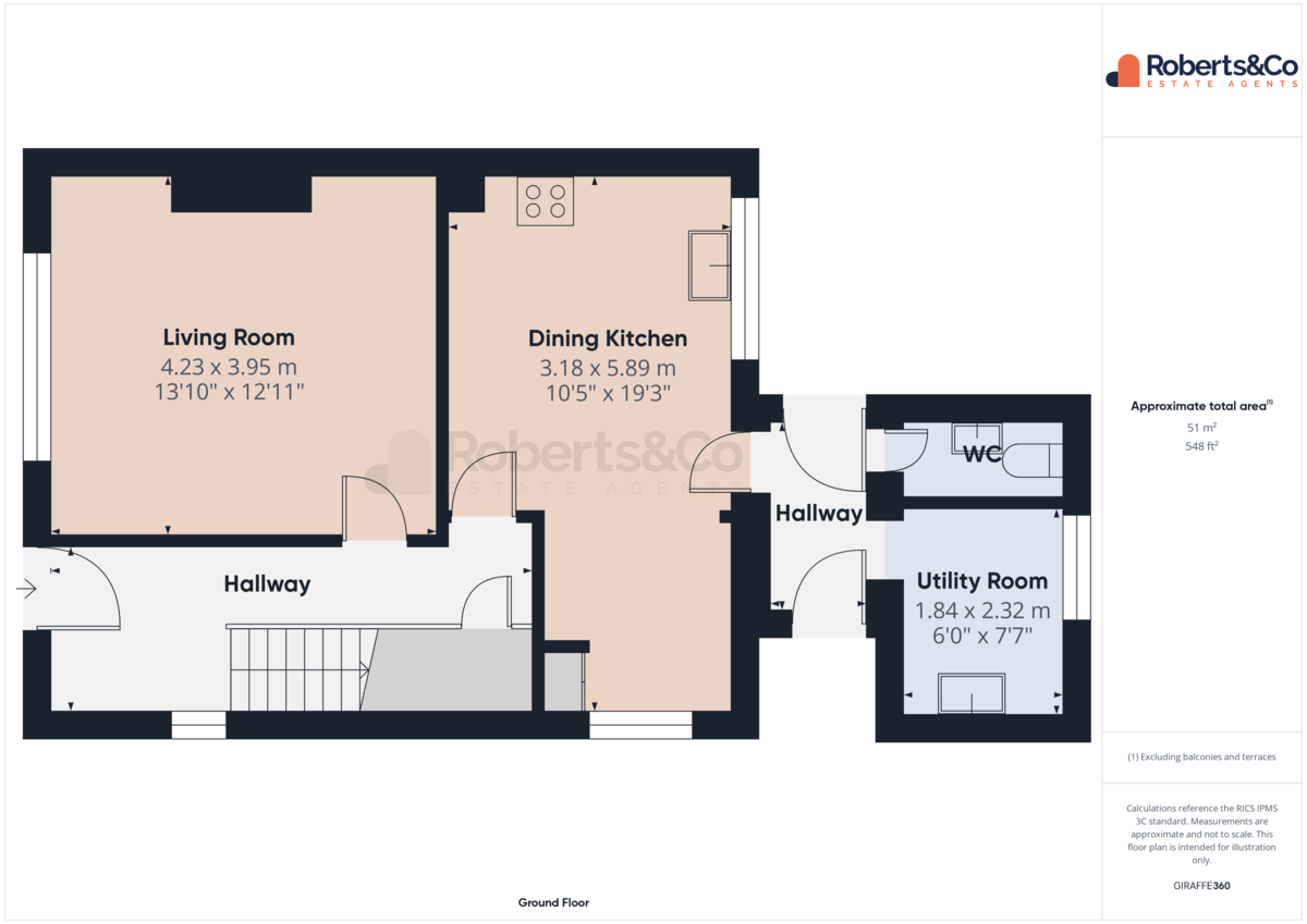 UTILITY ROOM 6' 0" x 7' 7" (1.84m x 2.32m)