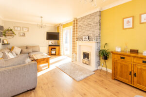 To the front of the property, there is driveway parking for two vehicles, access to the garage, and a welcoming porch leading into the entrance hall. Just off the hallway is a convenient ground floor WC. There is also a separate reception room to the front of the house, which would make an ideal home office, playroom or snug.