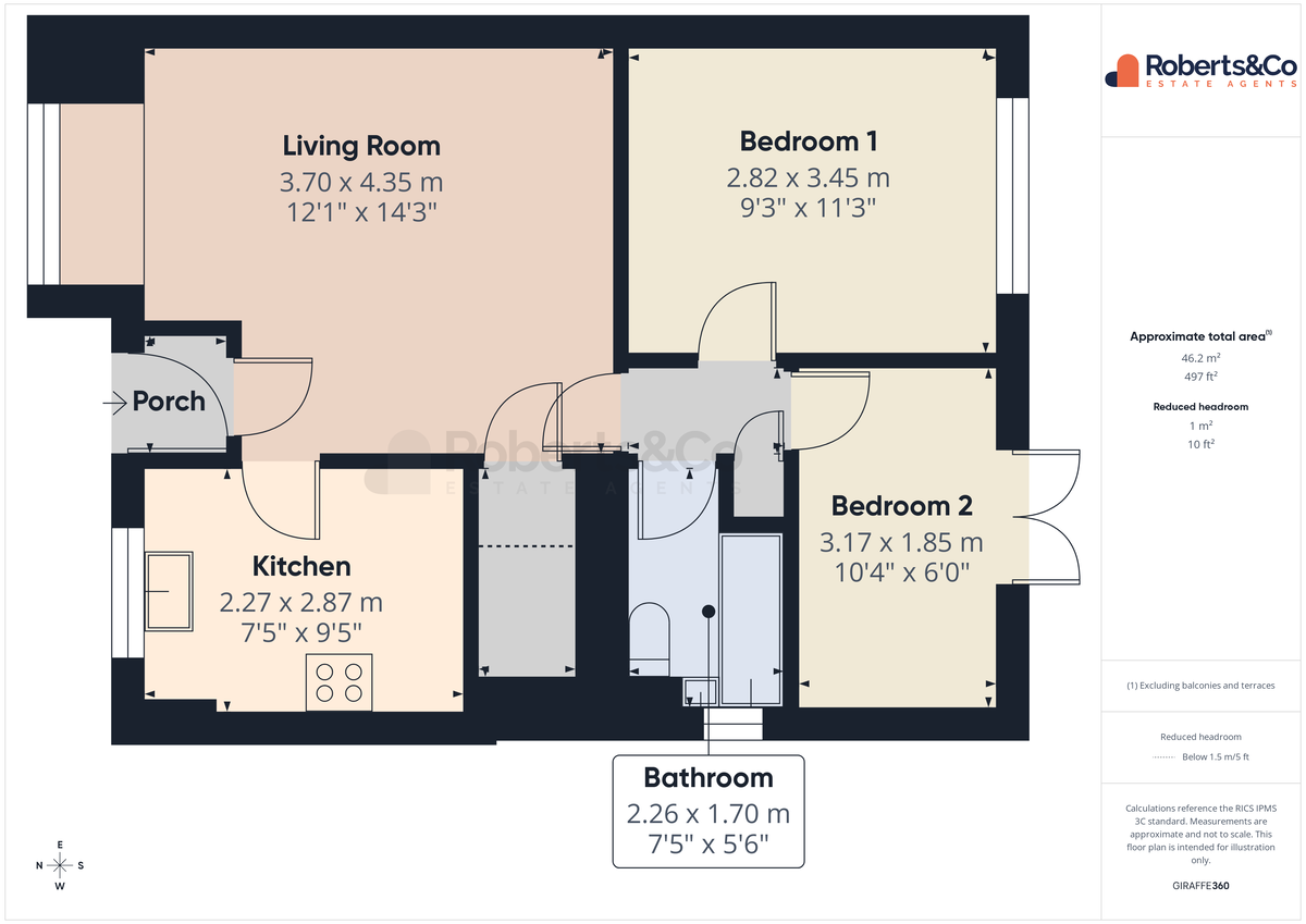 BATHROOM 7' 5" x 5' 6" (2.26m x 1.68m)