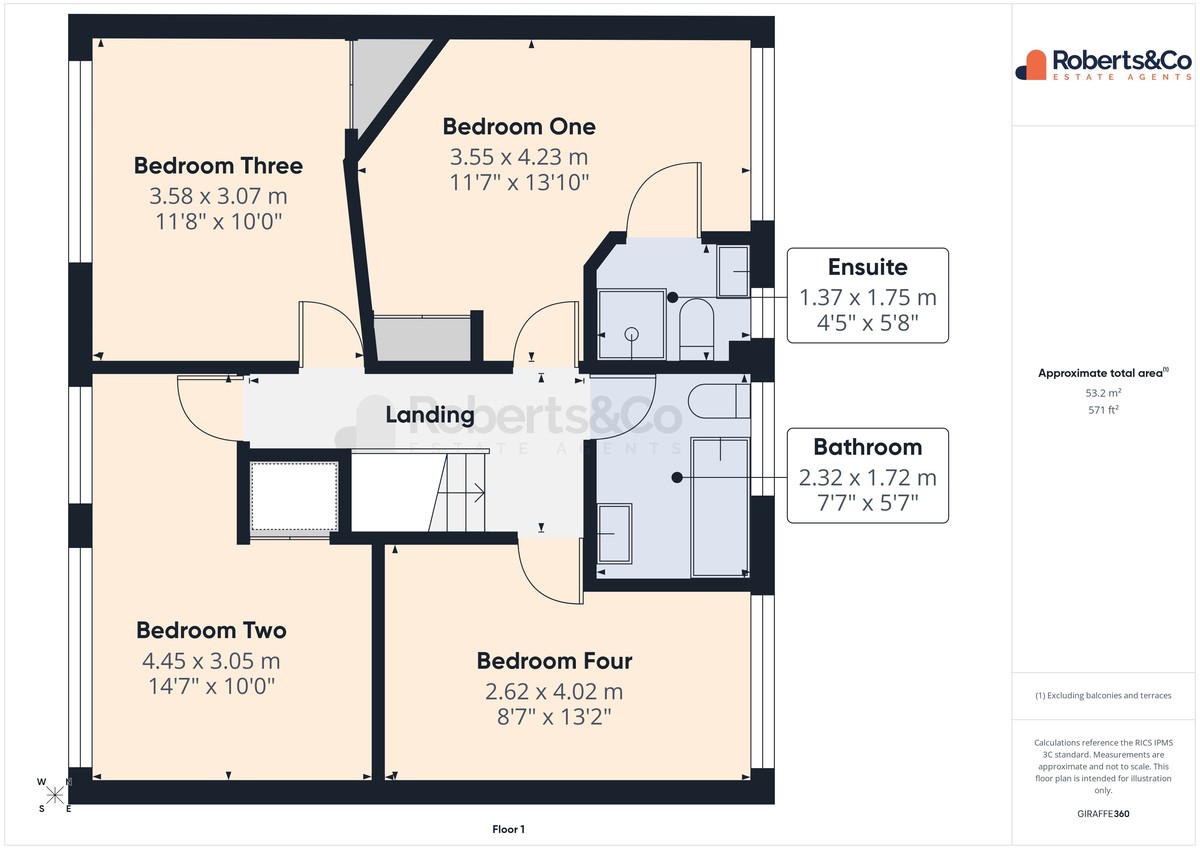 • Ensuite to Bed 1