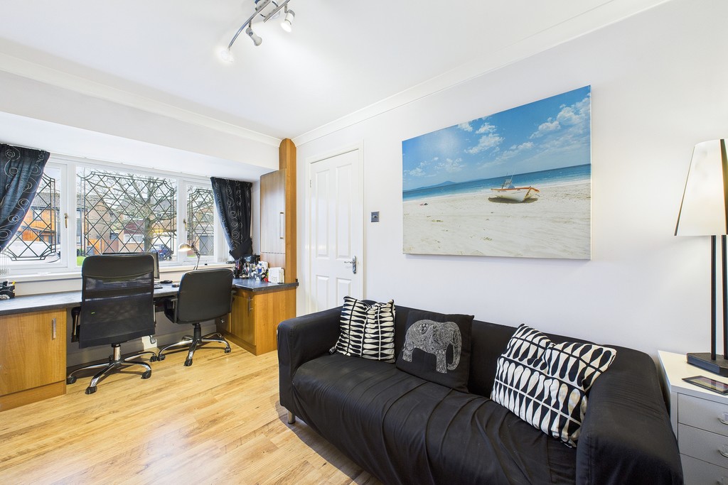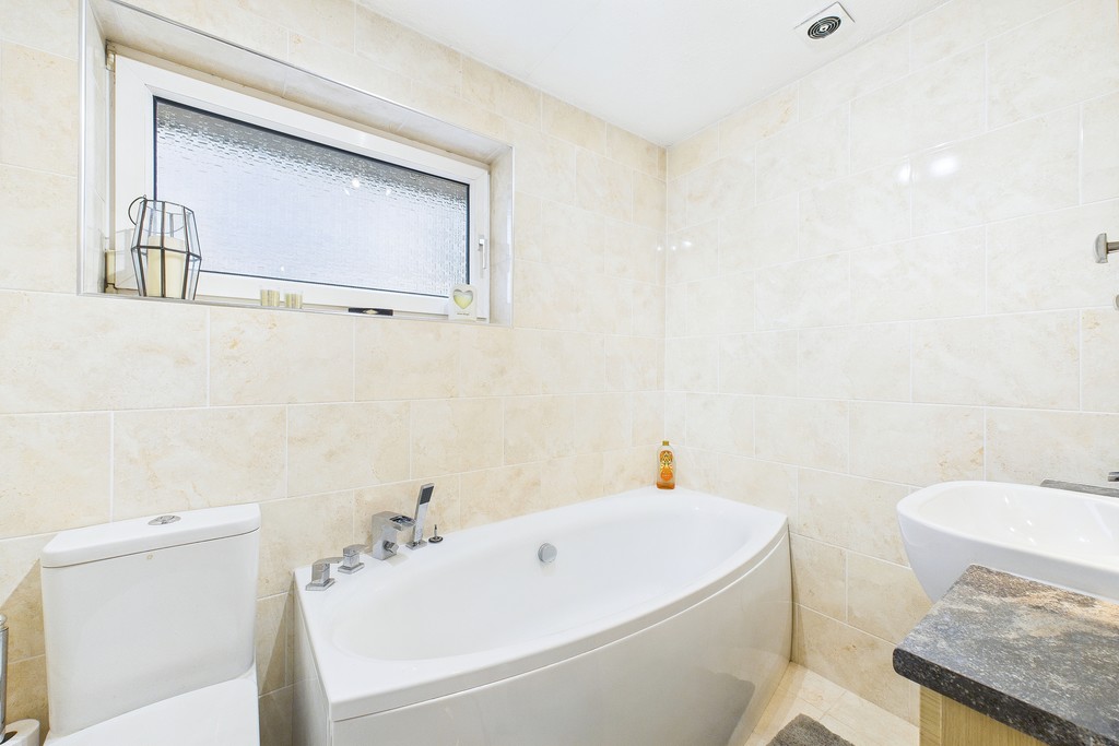 Upstairs, the property comprises four generously sized double bedrooms, with the principal bedroom benefiting from its own en-suite shower room. All bedrooms are fitted with built-in furniture. A modern three-piece family bathroom completes the first floor.