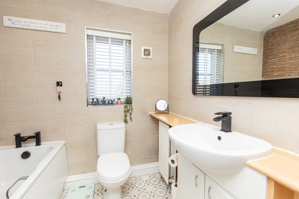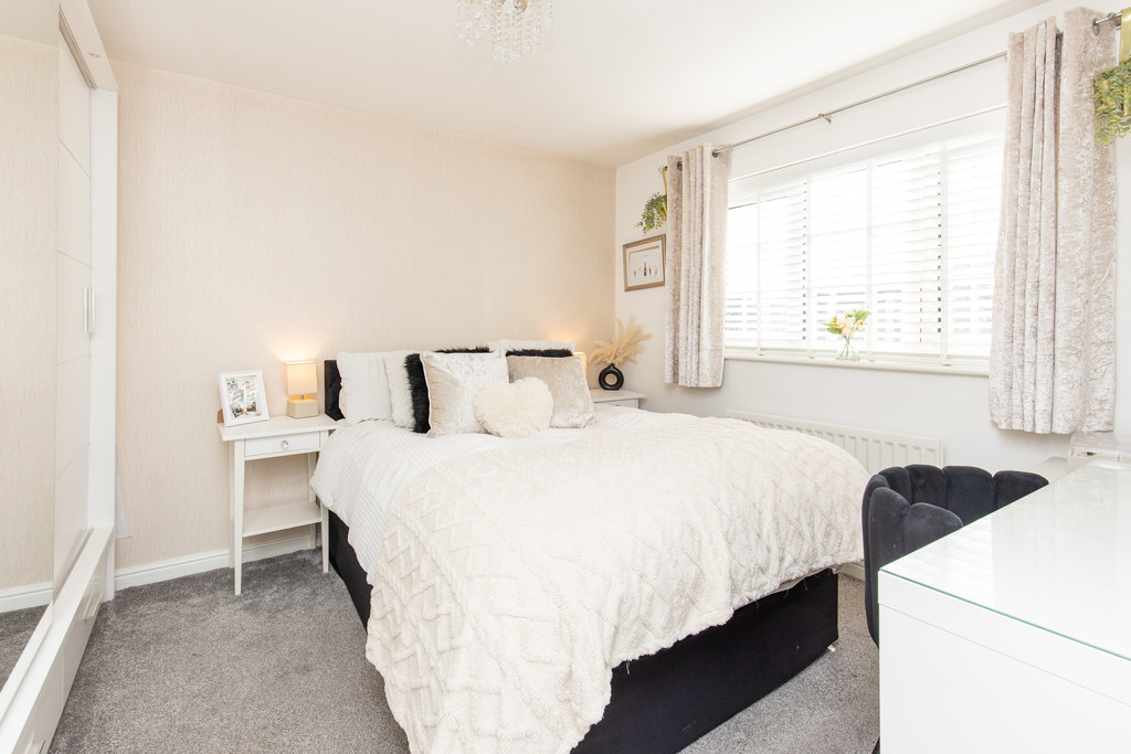 Externally, the property offers driveway parking for two vehicles at the front, complete with an EV charging point for convenient electric vehicle use. The rear garden has been designed for low-maintenance living, featuring artificial turf and multiple patio areas, ideal for relaxing or entertaining outdoors.