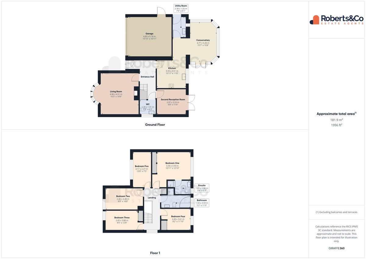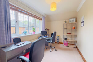 Upstairs, the property boasts five generously sized double bedrooms. The primary bedroom benefits from its own en-suite shower room and fitted wardrobes. Bedrooms three and four also feature built-in storage, and all are served by a well-appointed family bathroom.