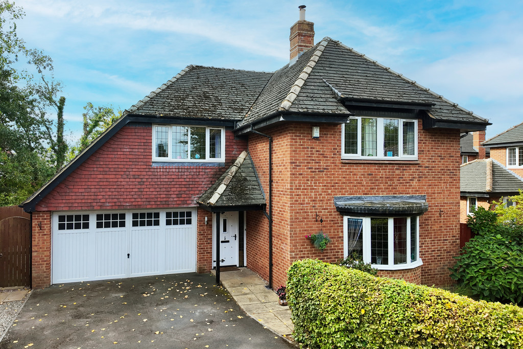 Externally, the home sits on a private, enclosed plot with a well-maintained rear garden and an additional good-sized area to the side, offering plenty of space for outdoor entertaining or potential future landscaping. There is a double garage with an electric door, housing the boiler, and a driveway providing parking for two vehicles.